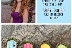Our local fairy is flying by again and adding sparkle and shine again this month! Book your appointment with Kelly for your own fairy hair! She has several colors to choose from and teaches you how to care for your new glittery goodness. While you wait, create your own fairy doors!
