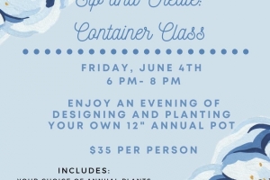 Enjoy an evening of sipping, designing, and planting your own 12" annual flower planters! Reservations are required.