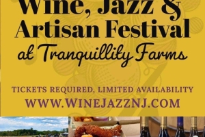 Wine, Jazz & Artisan Festival at Tranquillity Farms in Green Township, NJ features Unionville Vineyards, White Horse Vineyards, delicious food by James off Main, live jazz music trios, farm activities for the family, cheese & charcuterie, and over 40+ artisan craft vendors.