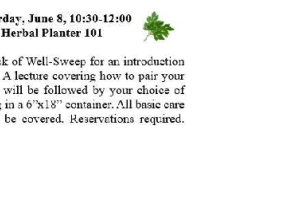 Create a delicious garden of culinary herbs for your enjoyment all summer long! Bring in your own basket or herb planter or choose from one of our unique containers. They will have recipes that include your herbs for you to take home.
