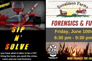 Calling all CSI fans! Not only will you have fun learning about forensic science, but you will actually do the testing required to solve the mystery of 'Secrets in the Soil.' Buffet style dinner provided by Mama's & Cafe Baci with vegetarian and gluten-free options included.