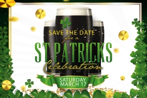 Food from 6-9pm and music from 7-10pm by A-Plus DJs. Enjoy Irish dishes including soda bread, potato bread, an Irish Cheese Board, Corned Beef & Cabbage, Irish Bangers, Shepherd's Pie, traditional Irish Dessert Display, a Guinness Float Station and more!