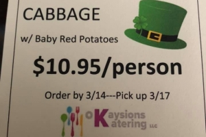Call 908-213-2222, order your corned beef and cabbage by 3/14 and pick up 3/17.
