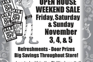 Open house with huge sales throughout the store. Refreshments will be available along with door prizes.