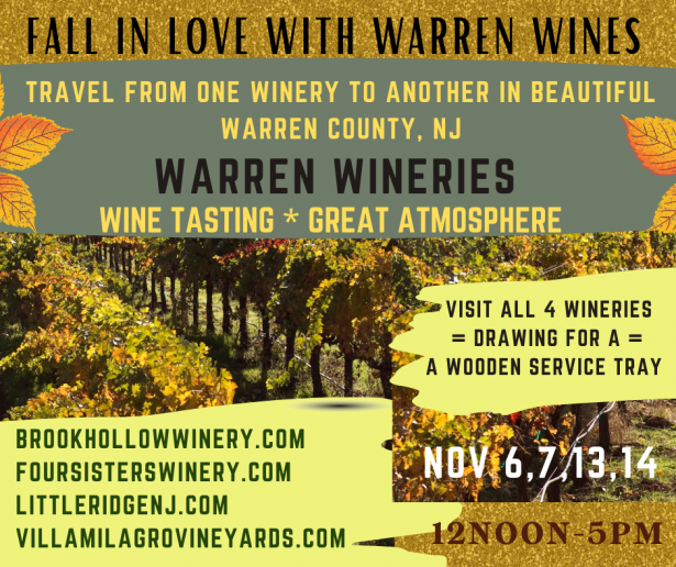 It's the second weekend that Warren County wineries are hosting a special wine tasting and leaf-viewing event, plus you have a chance to win a unique handmade charcuterie board by wood craftsman Dean Nikituk of One Man's Hands. Visit Brook Hollow Winery, Four Sisters Winery, Little Ridge Vineyards and Villa Milagro Vineyards to fall in love with the wines and wineries from this colorful corner of the state. NOTE: The four wineries involved all have different hours. Please check with each winery to plan your visit.