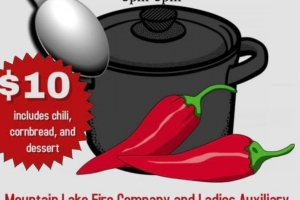 Homemade Chili Dinner! Includes chili, corn bread and dessert. $10/dinner, takeout only. Pre orders required; call 908-475-9259. Please support this last Ladies Auxiliaries fundraiser of the year.