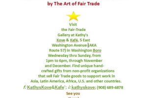 Kathy's Kove invites everyone to shop for the holiday season at the 3rd annual Fair Trade market, running from November into December, Wedneday through Sunday.