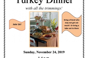 The community is invited to gather at Buttzville United Methodist Church for a turkey dinner with all the trimmings! Free. Bring someone who could use a good meal and some company, or take the dinner to them! 908-453-2301.