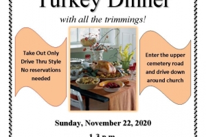 The community is invited to drive around the back of Buttzville United Methodist Church for a takeout turkey dinner with all the trimmings! Free. Pick up and deliver a good meal to someone who could really use it! 908-750-4394.