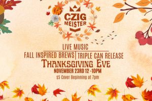 Czig Meister is staying open until 10pm for one of their favorite nights of the year! Offering Cranberry Sauce Sour and Cranberry Lime Hard CZeltzer, with live music kicking off at 8pm and $5 cover starts at 7pm!