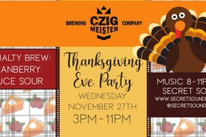 Join freinds for craft beer, featuring Cranberry Sauce Sour specialty brew, and live music from Secret Sound Band (8-11pm).