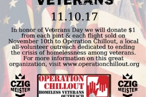 Celebrate our Veterans at Czig Meister Brewing Company! They will donate $1 for each pint and flight sold on November the 10. Live music from 6-9pm. Come on by and bring your four legged friend as well.