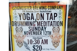 Yoga on Tap at Czig Meister! $20 includes a yoga class, drumming meditation and 1 beer. All levels are welcome.