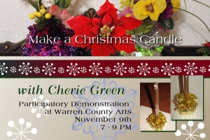 The Warren County Arts group meeting will feature Cherie Green leading a DIY Holiday Workshop. Cherie will lead participants in the creation of a holiday candle.