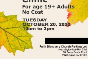 A free walk-up flu vaccine clinic for adults age 19 and older, in the parking lot of Faith Discovery Church (Washington Area Senior Center). Everyone must wear a mask and social distancing will be followed. A higher dose vaccine will be available for those age 65 and older.