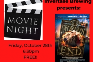 Come out to Invertase for a free showing of the classic movie, "The World's End"! An indoor presentation, you're welcome to bring family and friends, enjoy some good brews while watching the antics of actors Simon Pegg and Nick Frost...sure to be a lot of fun!