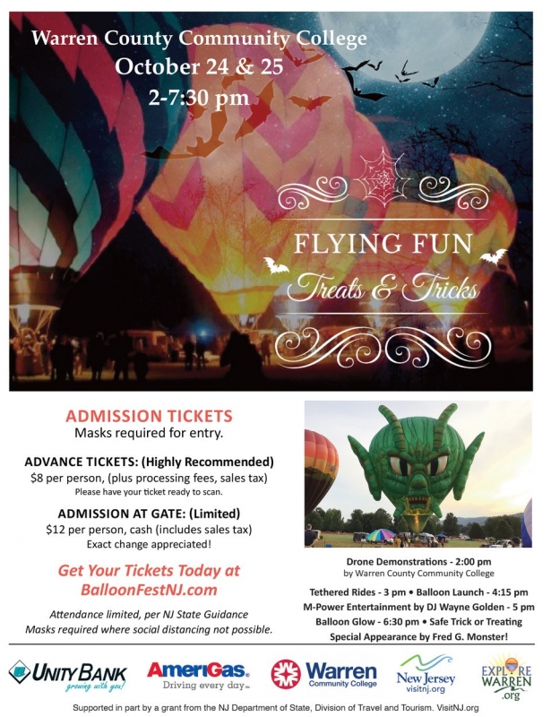 Two days of Hot Air Balloons - including the Monster Balloon - Drones, food trucks, some trick or treating for the kids, and a Balloon Glow both nights. “Mask up” but also dress in costume for this weekend event - there's a costume show both days - right before Halloween. Advance tickets are sold out, limited tickets at the gate, call for details.