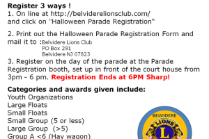 Fun family parade hosted by the Belvidere Lions Club. You can join in the parade with your costume or come to watch the parade. Register here. Hot dogs and cider will be provided to all