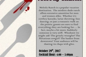 Murder at the Melody Ranch! Who did it? There will be karoke, line dancing and much more at this murder mystery dinner, which includes the meal served along with a cocktail hour. This is a family friendly event so please bring everyone. $45 per person.