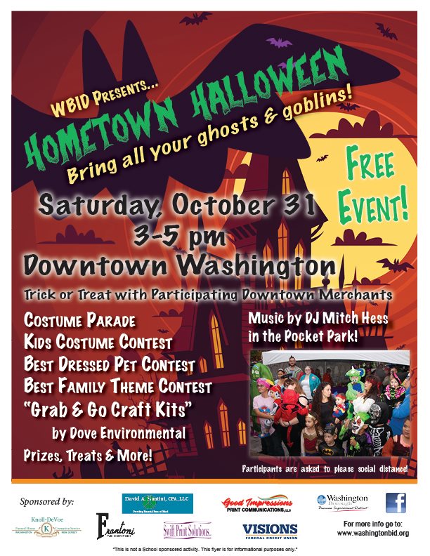 Get dressed up and into the Spirit of Halloween! Hometown Halloween is family fun for kids of all ages featuring a kids costume contest and a pet costume contest. Dove Environmental will offer spooky crafts to make and take. Trick or Treat at participating downtown merchants, and DJ Mitch Hess will be spinning some Halloween tunes.