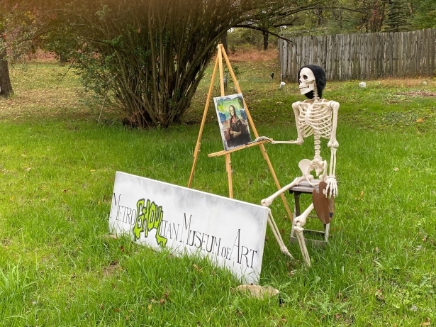 Along with Halloween, this weekend brings us a full moon and the end of Daylight Savings Time! If you feel like venturing out, sporting a costume and mask (in addition to the style we've become accustomed to wearing), below you will find numerous welcoming venues, and an extra hour to enjoy yourselves! Go forth, get into the spirit (like the mystery Brass Castle Road resident who put together the creative display pictured above), and find that brightly-lit porch!