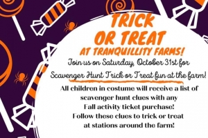 With the purchase of any Fall activity ticket- hayride, cow train, bounce pillow, corn maze, pumpkin launchers, etc., all children in costume will be given a list of scavenger hunt trick-or-treating clues!