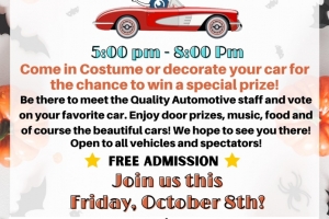 This is Quality Automotive's last cruise night of the year. Come in costume and decorate your car too! Enjoy food, music, door prizes and People's Choice awards for nice rides in beautiful Blairstown.