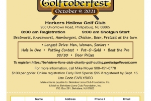 Join the Belvidere Lions Club for an Octoberfest-themed charity golf outing at beautiful Harkers Hollow Golf Club. Prizes, food and much more! Sign up to be a sponsor and support many worthwhile community groups. It's $100 per golfer; earlybird special of $95 if registered by Sept.