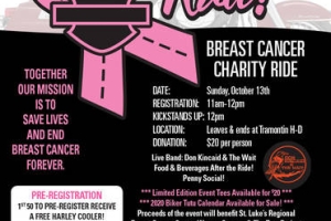 Together our mission is to save lives and end breast cancer. Departs from and ends at Tramontin Harley. $20 donation. Registration: 11am-12pm. Kickstands up: 12pm. Live music, food and beverages after the ride. First 50 to preregister will receive a free Harley cooler. 908-459-4101.