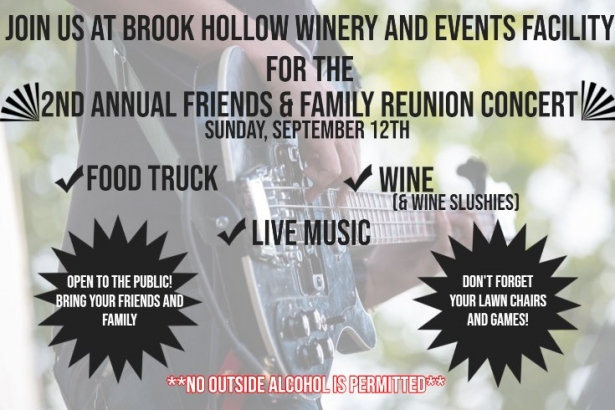 Bring food or leave it at home with an onsite food truck. Enjoy our wine and live music with friends and family. Don't forget to bring lawn chairs and games!